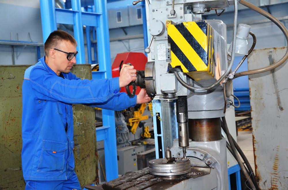 Одним из самых внушительных по габаритам станков является токарно-карусельный. Его вес около 14 тонн, а высота почти 3 метра. Он позволяет производить расточку фланцев необходимого размера диаметром до 1200 мм.