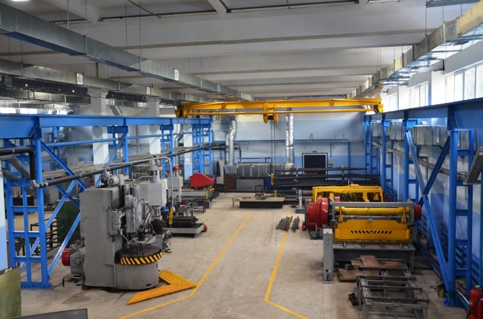Для резки металла различной толщины используется пара гильотинных ножниц, для изготовления изделий цилиндрической и конической формы – вальцы. Цех также оснащен шестью токарными станками, гибочным прессом, пресс-ножницами и другим оборудованием, необходимым для обработки металлопроката любого вида. Над входом установлены микрометр и трехметровый штангенциркуль как символ точных измерителей, необходимых при металлообработке ежедневно.