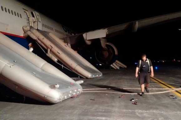 Пассажиров эвакуировали с помощью надувных трапов. Пострадавших нет.