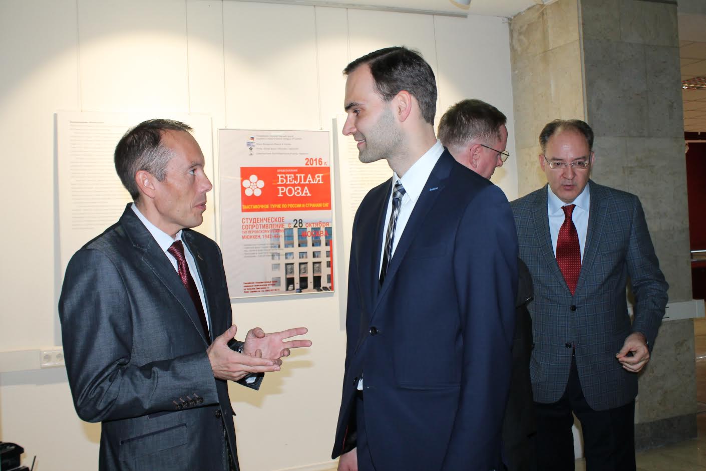 В рамках открытия была показана первая часть документального фильма о нашем земляке «Противостояние «Белой розы», а участники мероприятия с российской и немецкой стороны уже вовсю обсуждали возможные мероприятия, которыми в 2017 году предстоит встретить 100-летие со дня рождения героя-антифашиста Александра Шмореля – святого Александра Мюнхенского. Выставка в РГАСПИ в центре российской столицы по адресу ул. Б. Дмитровка, 15, будет работать до конца этого года.
