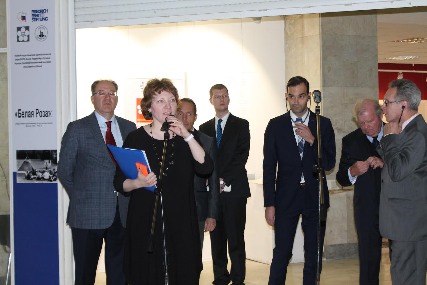 От принимающей стороны экспозицию открыл директор РГАСПИ Андрей Сорокин. В этом году выставочный проект поддерживает филиал немецкого фонда им. Фридриха Эберта в России, поэтому о том, каким связующим звеном служит сегодня для России и Германии личность оренбуржца Александра Шмореля, говорил руководитель департамента Центральной и Восточной Европы фонда Маттиас Йобелиус. О «выдающемся сыне Оренбурга, который выступал при жизни и выступает сейчас духовным посредником между нашими народами» сказал в своем приветствии полномочный министр – постоянный представитель посла Германии в России Андреас Майтцнер.