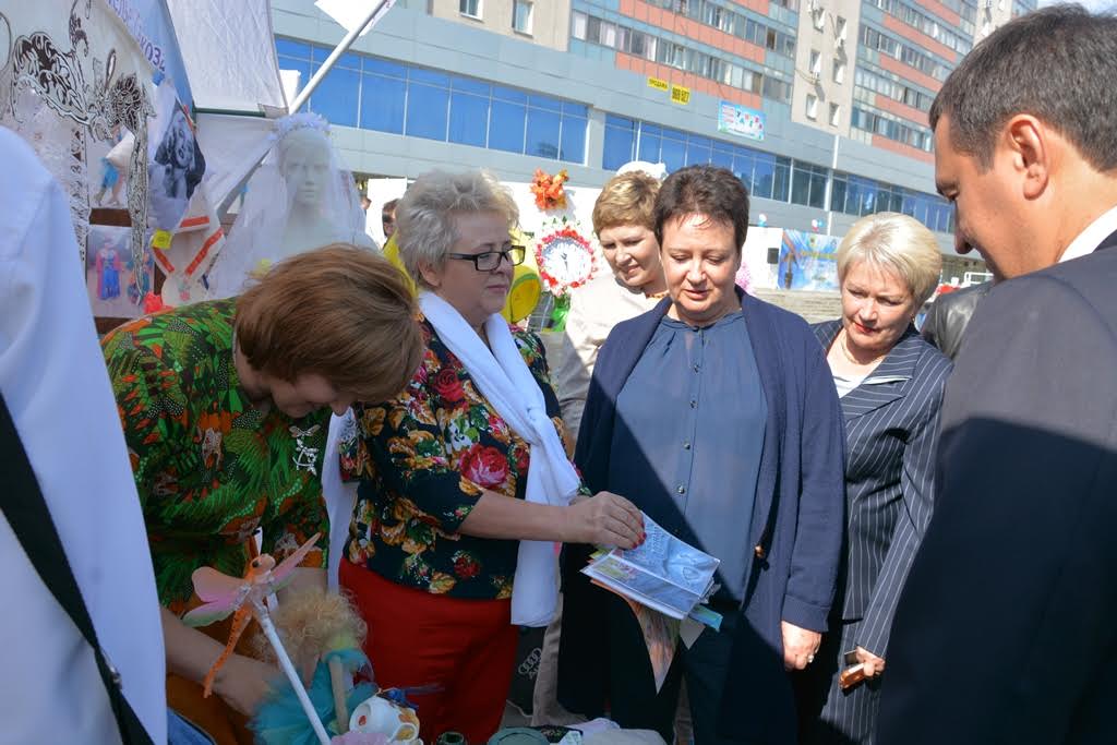 Вместе с гостями ярмарки заместитель председателя Оренбургского городского Совета посетила торговые ряды, осмотрела экспозиции, оформленные предпринимателями, продегустировала продукцию.