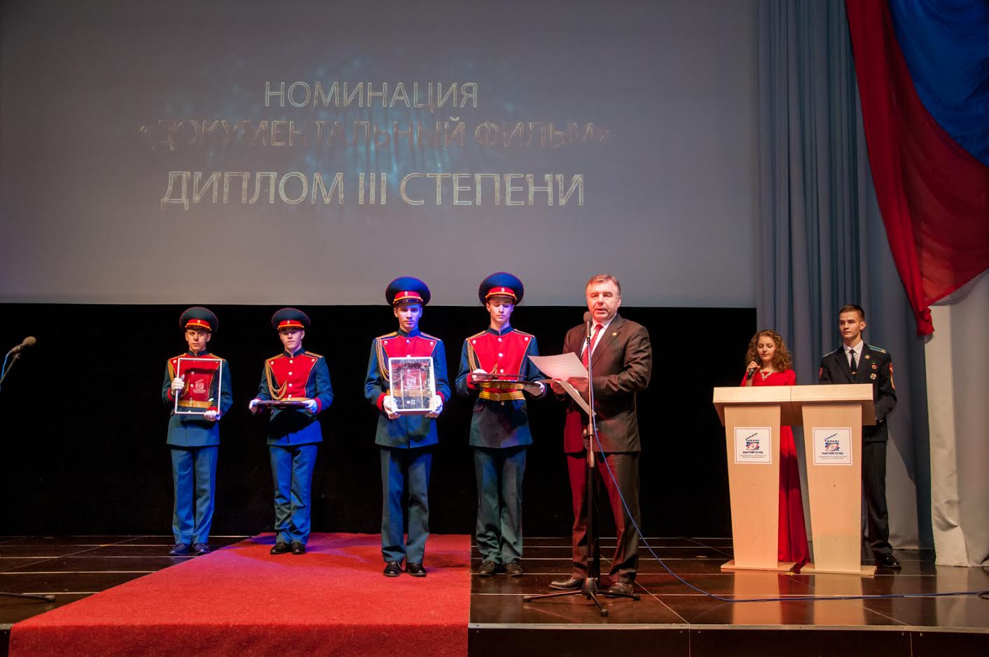В номинации «Документальный фильм» высшая награда – скульптурная композиция «Золотой эполет» – вручена курсантам Нахимовского военно-морского училища Санкт-Петербурга, снявшим фильм «Где начинается море». Диплом второй степени получила лента «Воины, преданные Отечеству», подготовленная воспитанниками Тюменского президентского кадетского училища. Дипломом третьей степени отмечен фильм «Кубанские дороги великого полководца», представленный воспитанниками Краснодарского президентского кадетского училища.