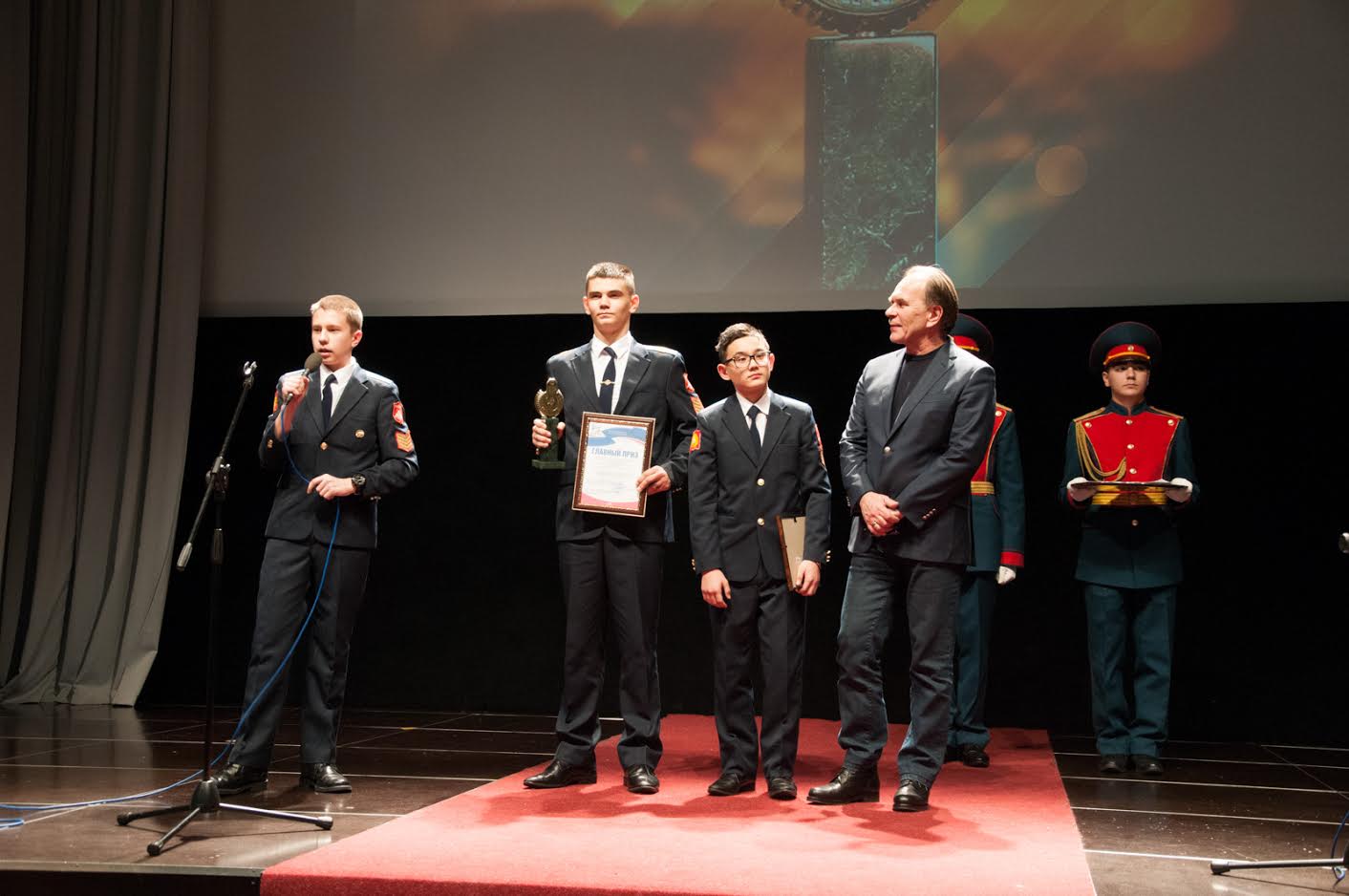 Завершился кинофестиваль церемонией награждения победителей. Гран-при фестиваля из рук народного артиста России Алексея Гуськова получили воспитанники Оренбургского президентского кадетского училища за создание фильма «Сын четырёх стихий».