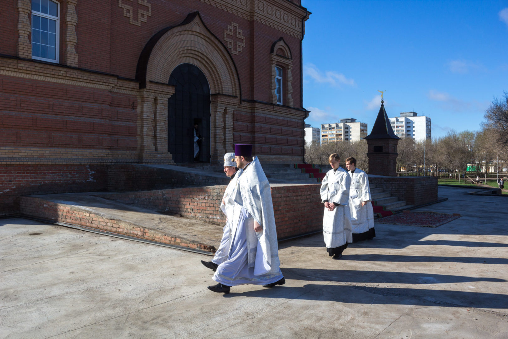 В настоящее время продолжаются работы в самом храме и на прилегающей территории храмового комплекса.