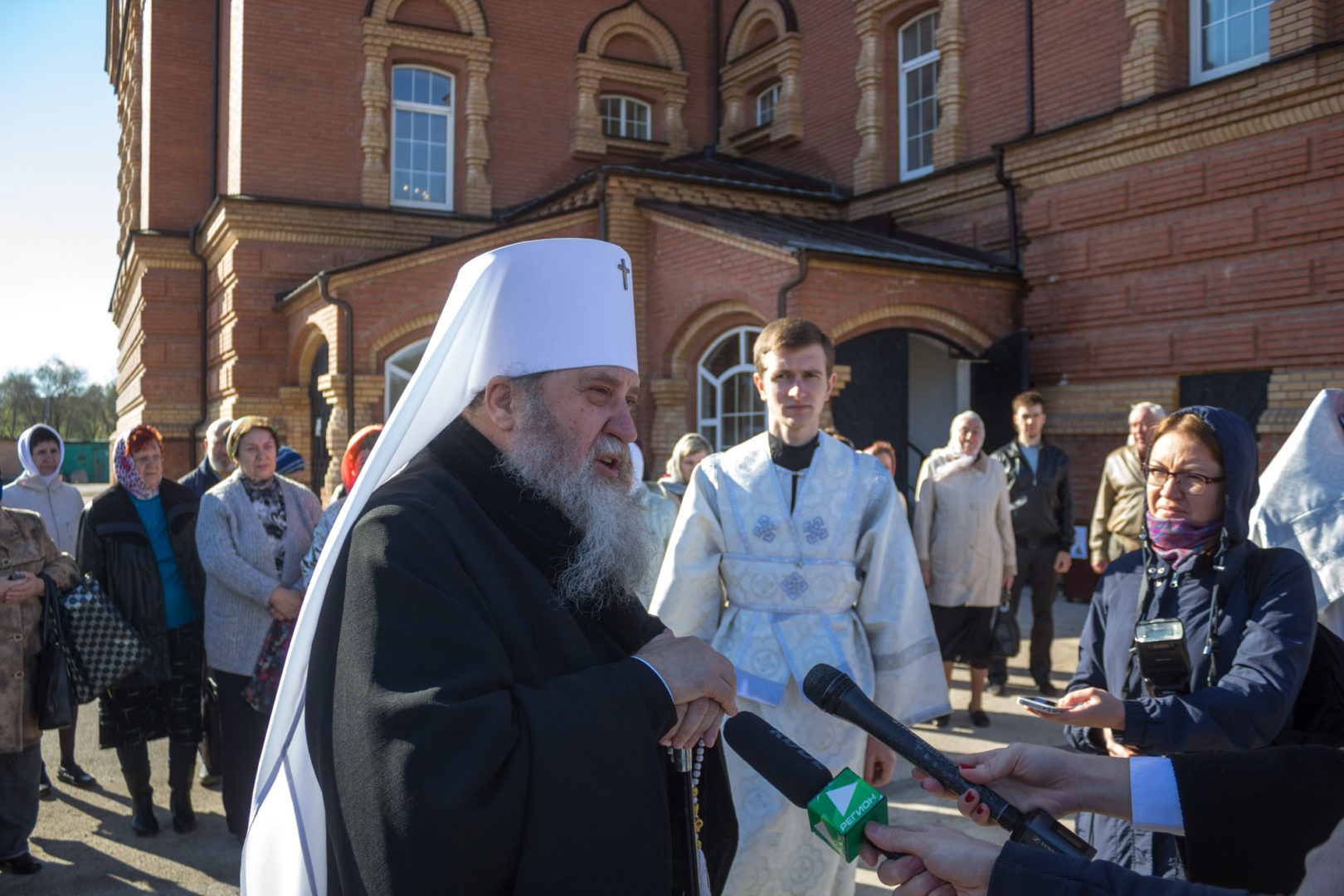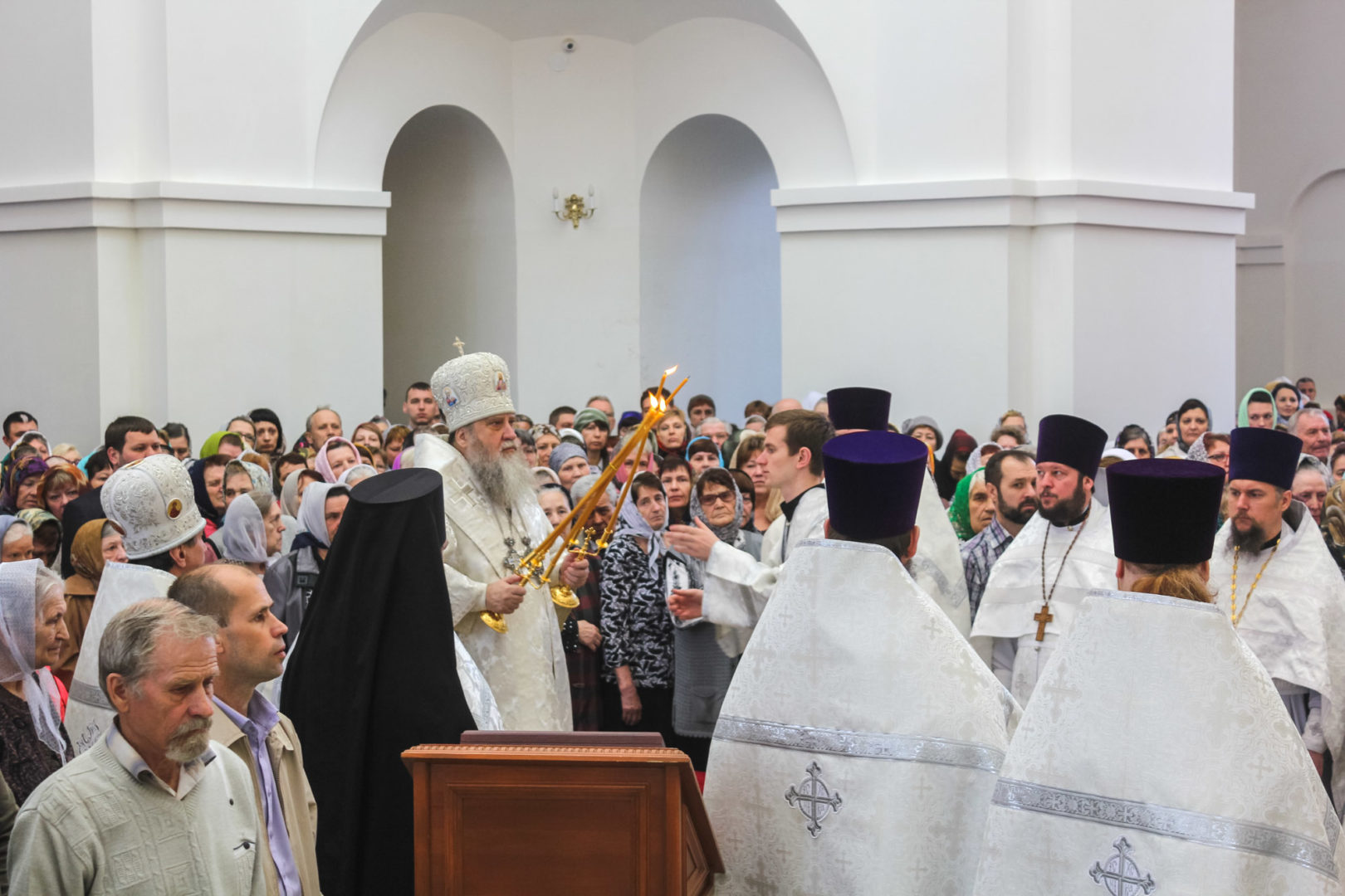 С раннего утра верхний храм был полон прихожан — все с нетерпением ожидали приезда митрополита Вениамина. Настоятель храма протоиерей Иоанн Кочанкин с теплом приветствовал владыку.