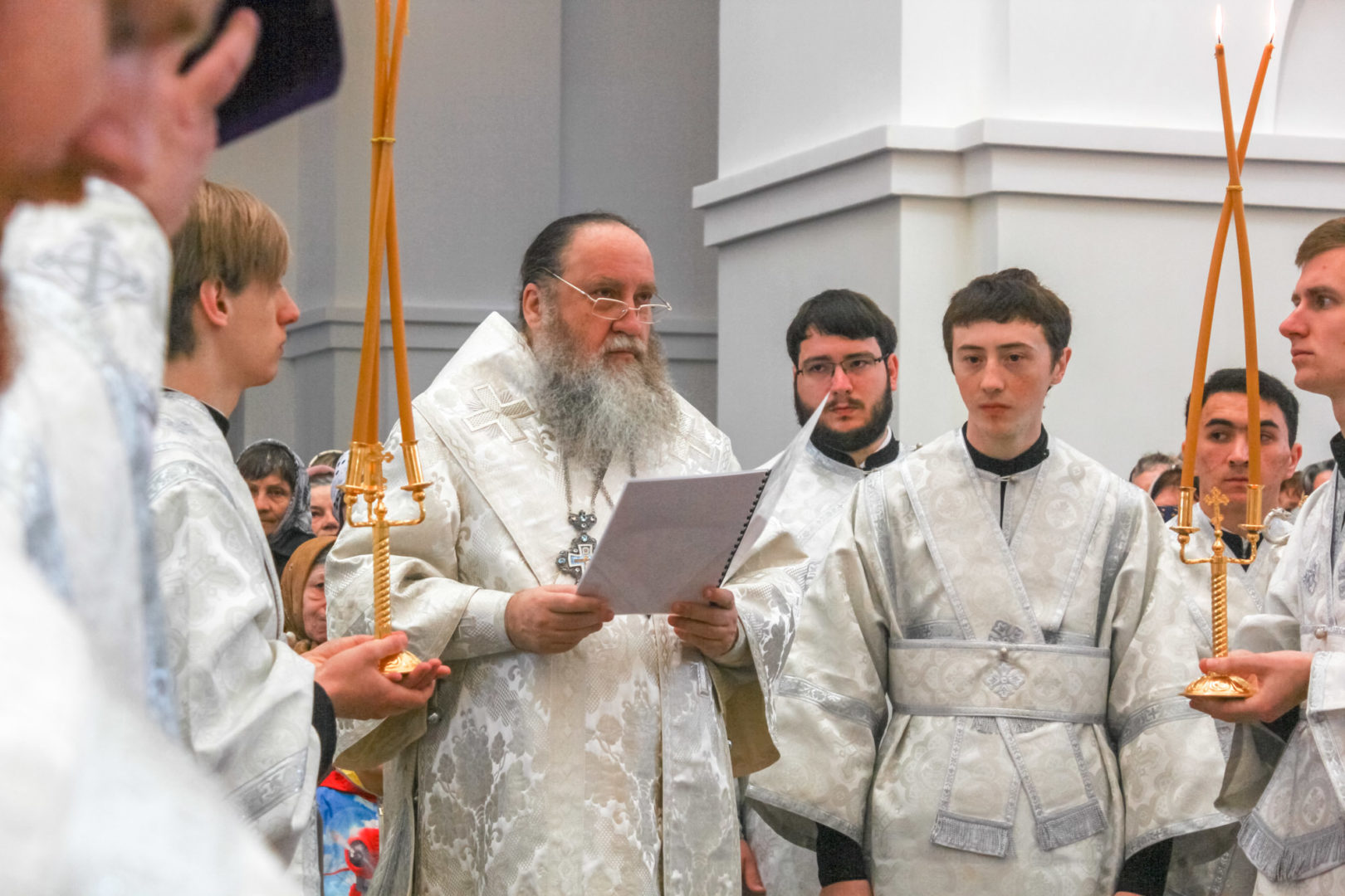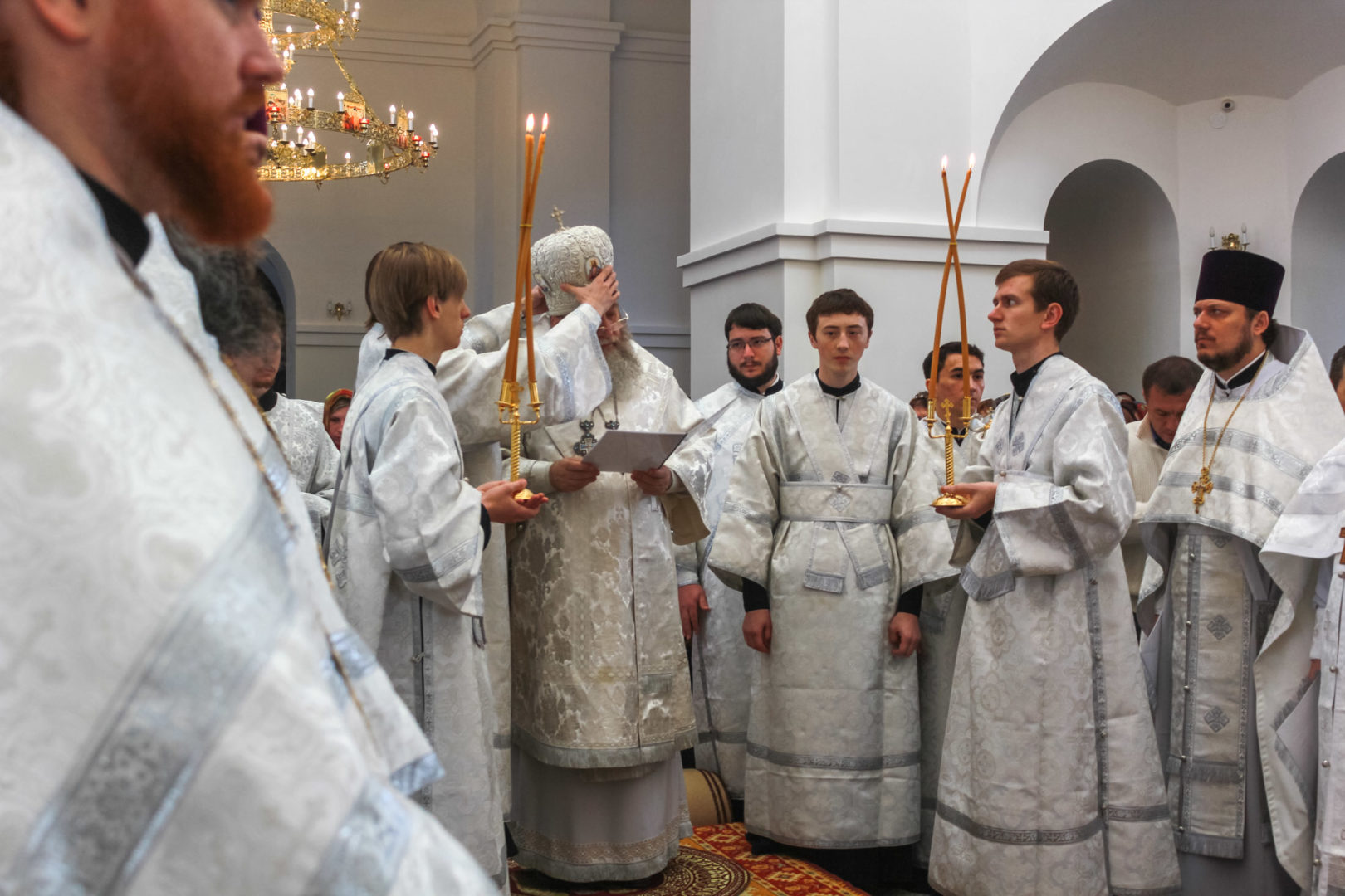 За богослужением пел хор Оренбургской духовной семинарии под руководством иерея Александра Ромашкова и приходской хор Казанского собора под управлением Ирины Зинковской.