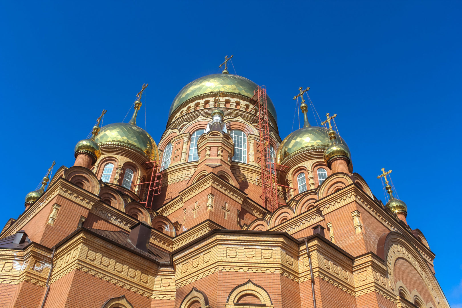 Храм двухъярусный с 4 пределами и 17 куполами, самый большой из которых весит 16 тонн. Высота собора вместе с крестом – около 55 метров. Вместимость до 2 тыс. человек. Современный Казанский храм выше своего разрушенного предшественника и выстроен несколько в другом стиле с учетом древнерусских традиций.