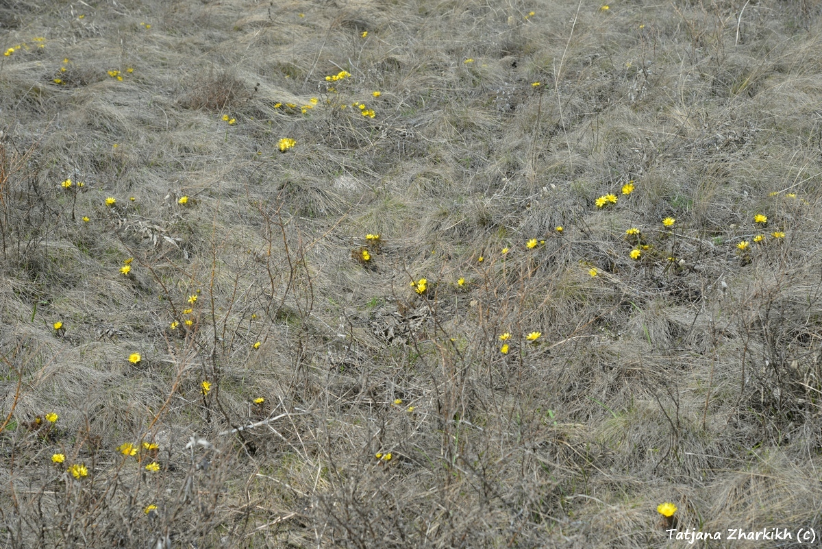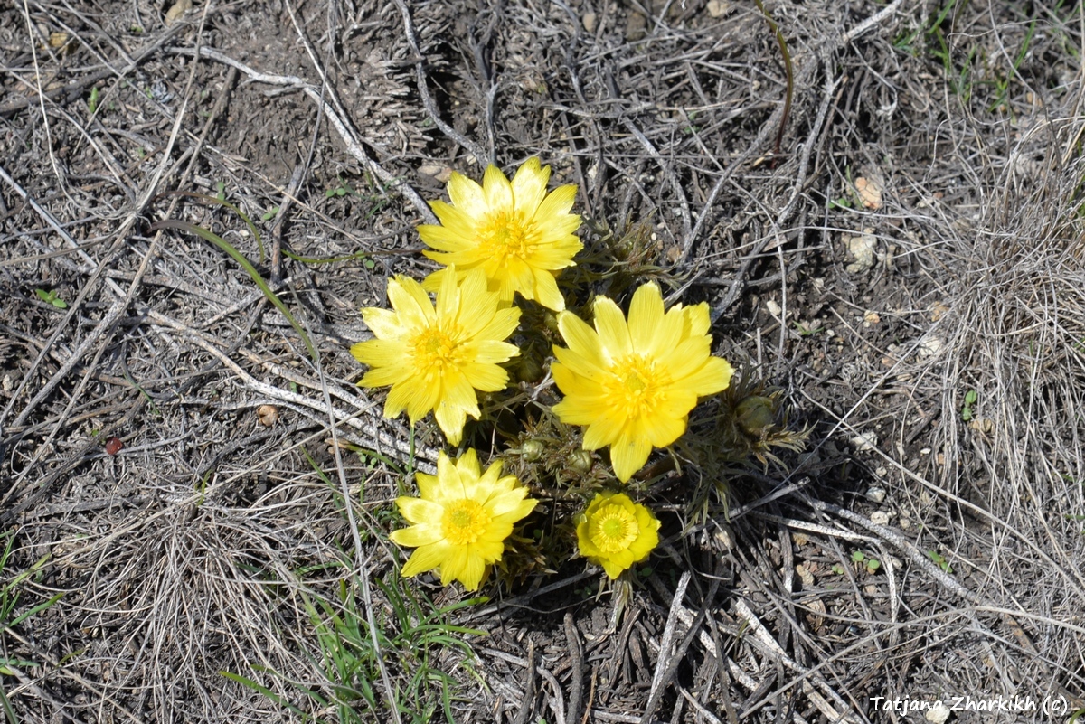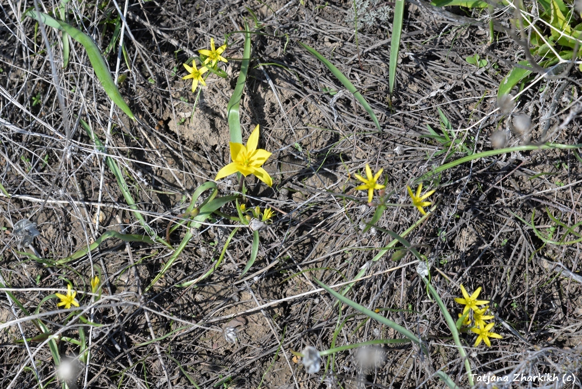 Зимой на нашем участке «Предуральская степь», слушая завывания метелей и наблюдая, как растут сугробы вокруг кордона, мы думали, что весна наступит поздно. Но сегодня, 13 апреля, у нас праздник – мы увидели первые тюльпаны. Первыми из рода Tulipa обычно расцветают нежные жёлтенькие тюльпаны Биберштейна – они маленькие, не выше 10 сантиметров и едва-едва поднимают головки над пожухлой степной растительностью. Но в этом году у нас одновременно с Биберштейна зацвёл и другой вид – тюльпан поникающий. На вершине водораздела между урочищами Колубай и Курсай мы нашли один единственный цветок с характерными бело-жёлтыми лепестками. Впрочем, другие степные первоцветы – гусиный лук и редкий адонис волжский – на два дня опередили цветение тюльпанов. Они тоже сияющего жёлтого цвета, но если скромные звёздочки гусиного лука можно увидеть вместе с тюльпанами, то адонисы цветут только в своей дружной компании.