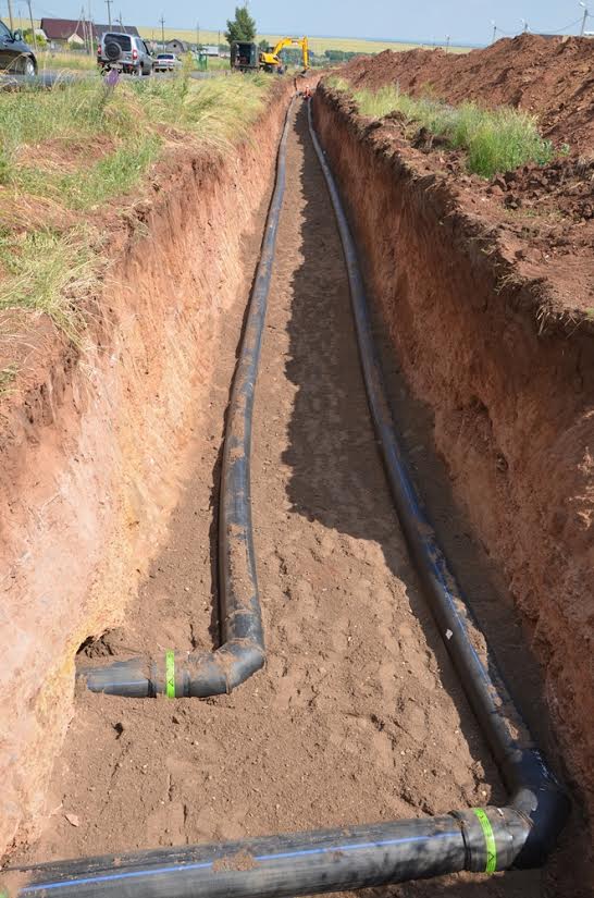 Полиэтиленовый трубопровод монтируется открытым способом. В траншею укладываются по две трубы диаметром от 315 до 630 мм. Два источника водоснабжения необходимы для бесперебойной подачи воды. Кроме того, в районе пересечения улиц Гаранькина и Загородное шоссе будет установлена повысительная насосная станция, которая будет поддерживать необходимый уровень давления в трубопроводе.