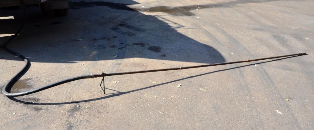 Все гениальное просто. Алексей скрепил составные куски металлической трубы, и получилась двухметровая конструкция. Теперь рабочие не спускаются в колодец, а закрепляют промывочный шланг на этой трубе, опускают ее на дно колодца и включают воду. Благодаря своим эргономическим свойствам – металл не гнется и намного тяжелее резинового шланга – конструкция не выскакивает из колодца и хорошо промывает дно. Изделие даже не нужно придерживать, оно устойчиво и надежно фиксируется в колодце.