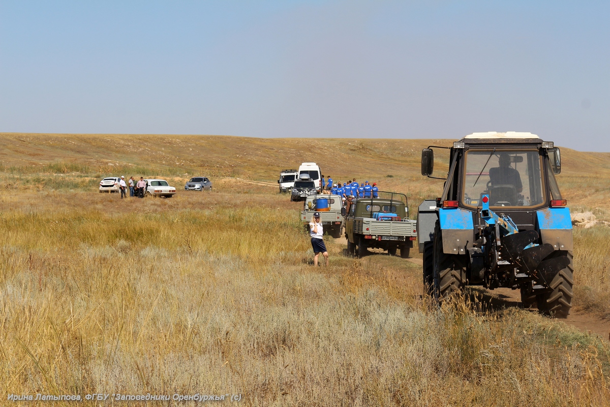 Работа государственной инспекции ФГБУ «Заповедники Оренбуржья» произвела большое впечатление на гостей заповедника. Во время показательного выступления по отработке действий противопожарных сил и средств государственные инспекторы под руководством заместителя директора учреждения Латыпова Андрея доказали свой профессионализм и боевой характер. При тушении условного пожара российские и иностранные гости, как будущие специалисты в области безопасности, получили уникальные знания о технических и тактических особенностях тушения степных пожаров.