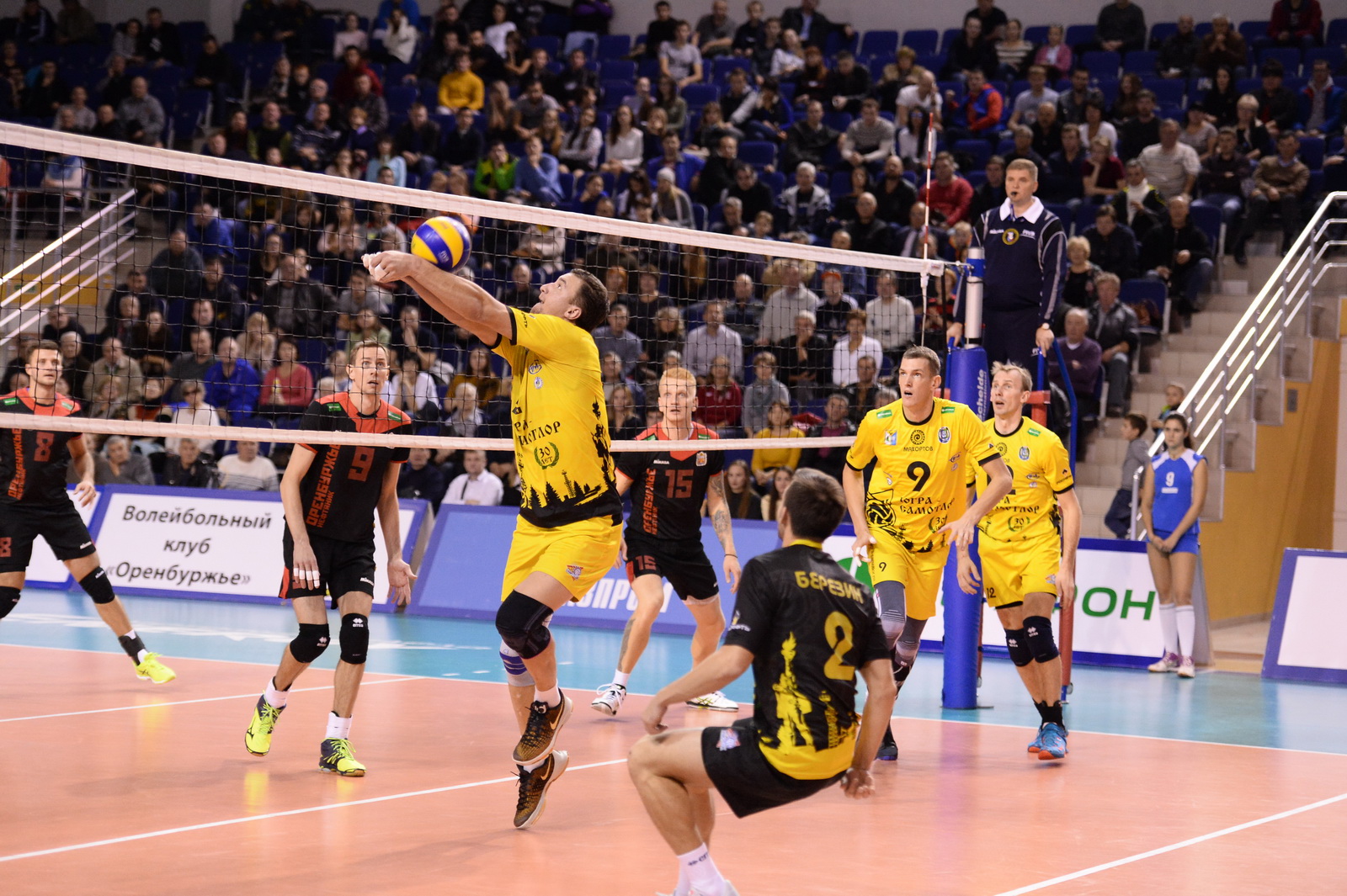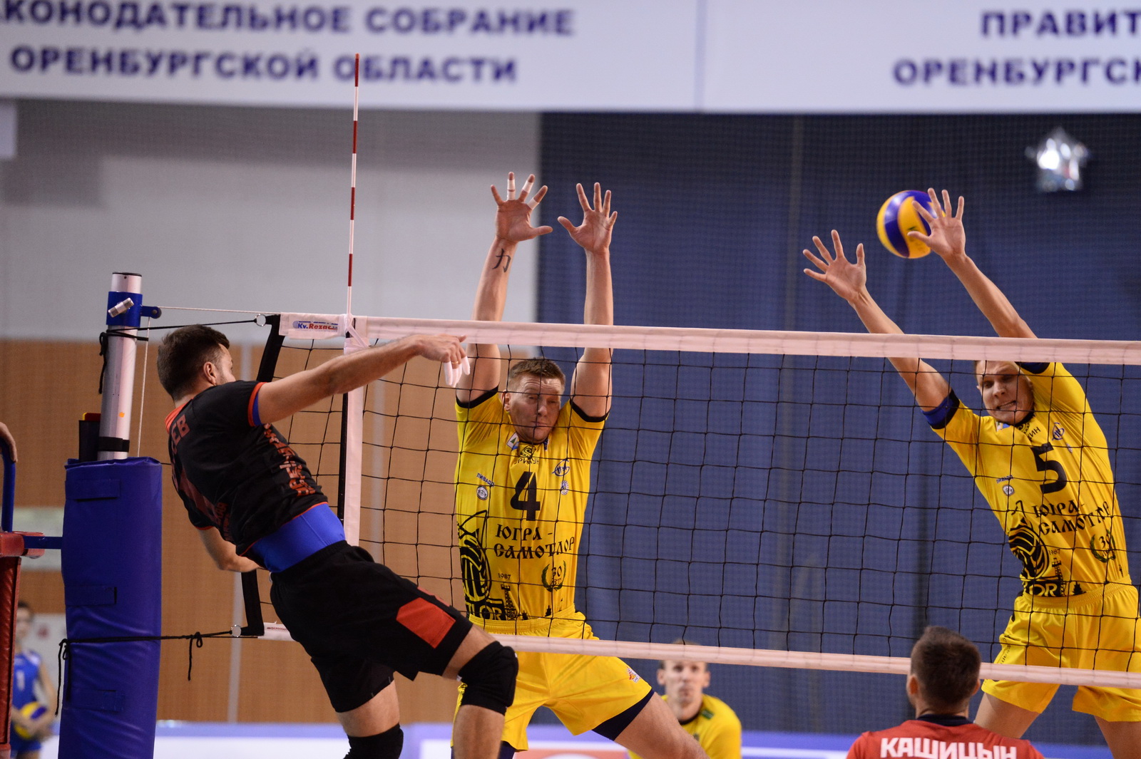 «Нефтяник» уверенно, по-хозяйски начинает первую партию. Два эйса Д. Полякова и Оренбург уходит в отрыв – 4:1. Эйс В. Васильева перед первым техническим перерывом делает счет – 8:5. «Югра-Самотлор» всеми силами пытается не дать хозяевам площадки наращивать преимущество в счете, но их планы нарушили удачная подача М. Бестужева и активные действия в атаке Д. Полякова – 14:10. В. Васильеву удается практически невозможное, он достает безнадежный мяч, партнеры по команде его поддерживают и доводят атаку до логичного завершения – 16:12. Таймаут взяты Владимиром Терентьевым при счете 19:16 приносит свои плоды — мощный пайп от В. Иванова и активные атакующие действия игроков «Нефтяника» оформляют команде пять сетболов, первый же из которых удачно реализуется – 25:19.
