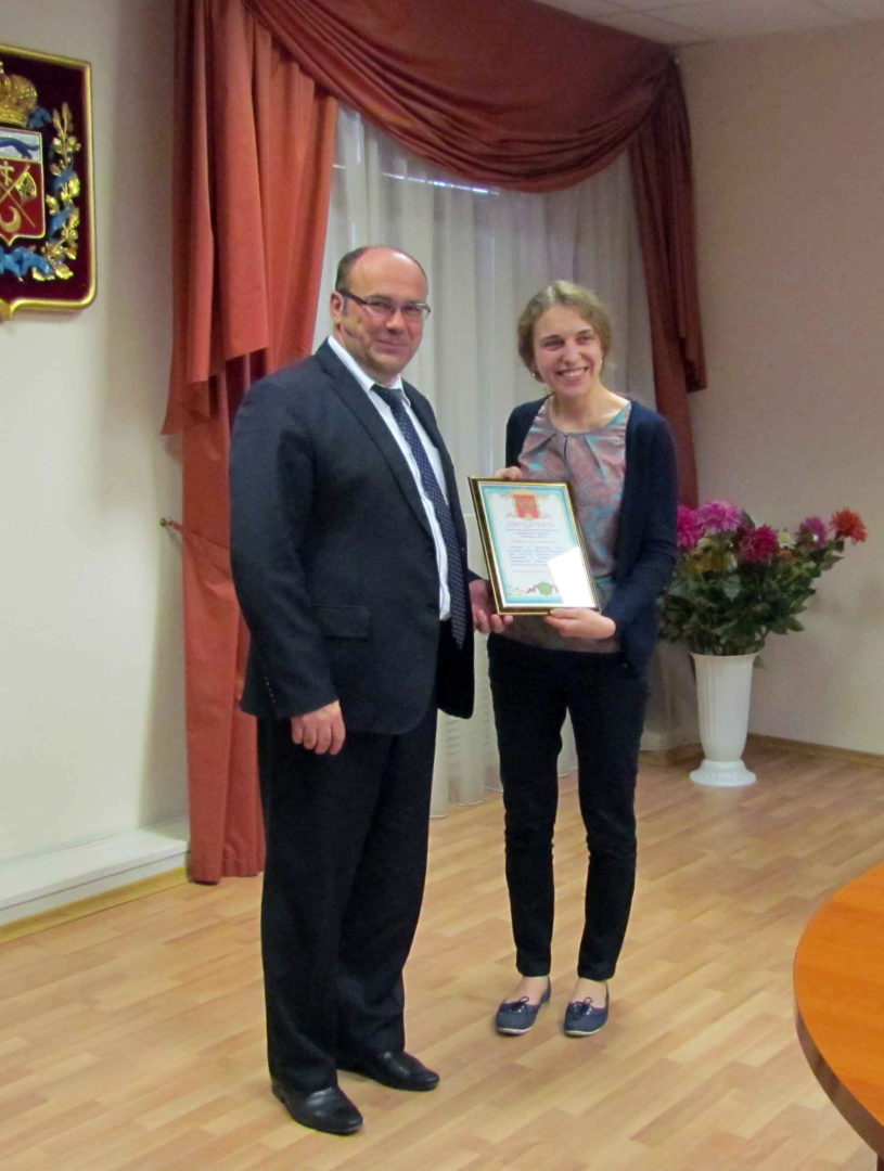 Алёну Гниденко, вошедшую в тройку «бронзовых» призёров, ожидал ещё один приятный сюрприз – она была удостоена специальной премии от Отделения по Оренбургской области Уральского главного управления ЦБ РФ. Вручая награду, управляющий Отделением Оренбург Александр Стахнюк отметил, что год от года журналистские материалы, рассказывающие о банковском секторе, демонстрируют всё большую компетентность авторов, становятся более глубокими и взвешенными, и выразил надежду, что сотрудничество представителей СМИ и банковского сообщества и в дальнейшем будет интересным и полезным для населения области.
